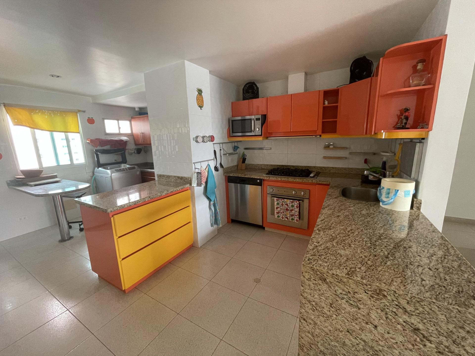 • Con estufa de gas, lavaplatos eléctrico, Microondas y zona de lavandería con lavadora eléctrica.