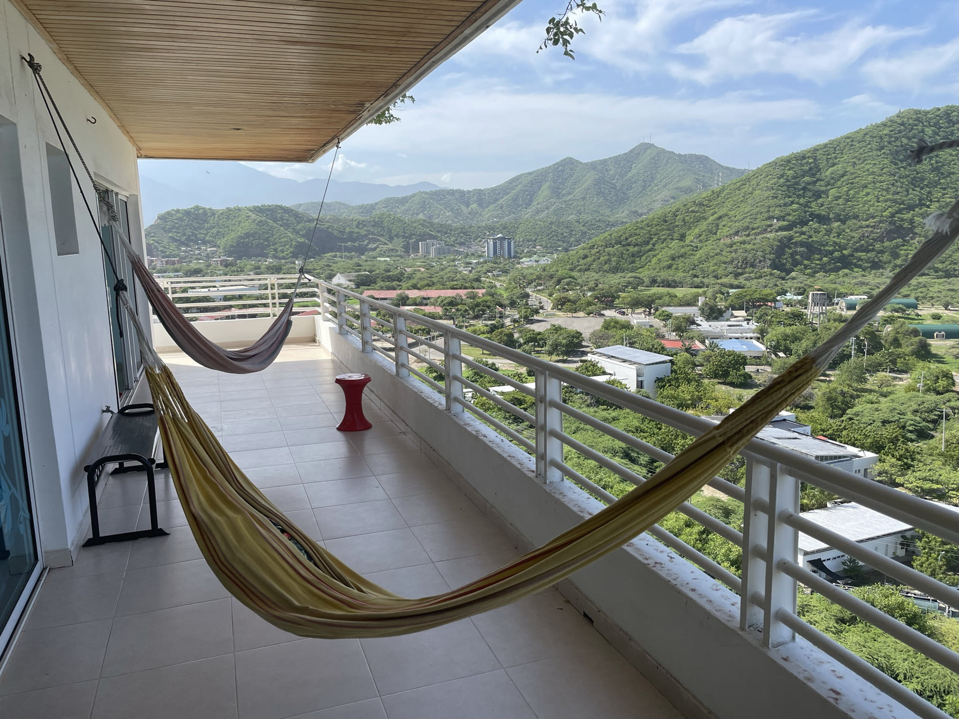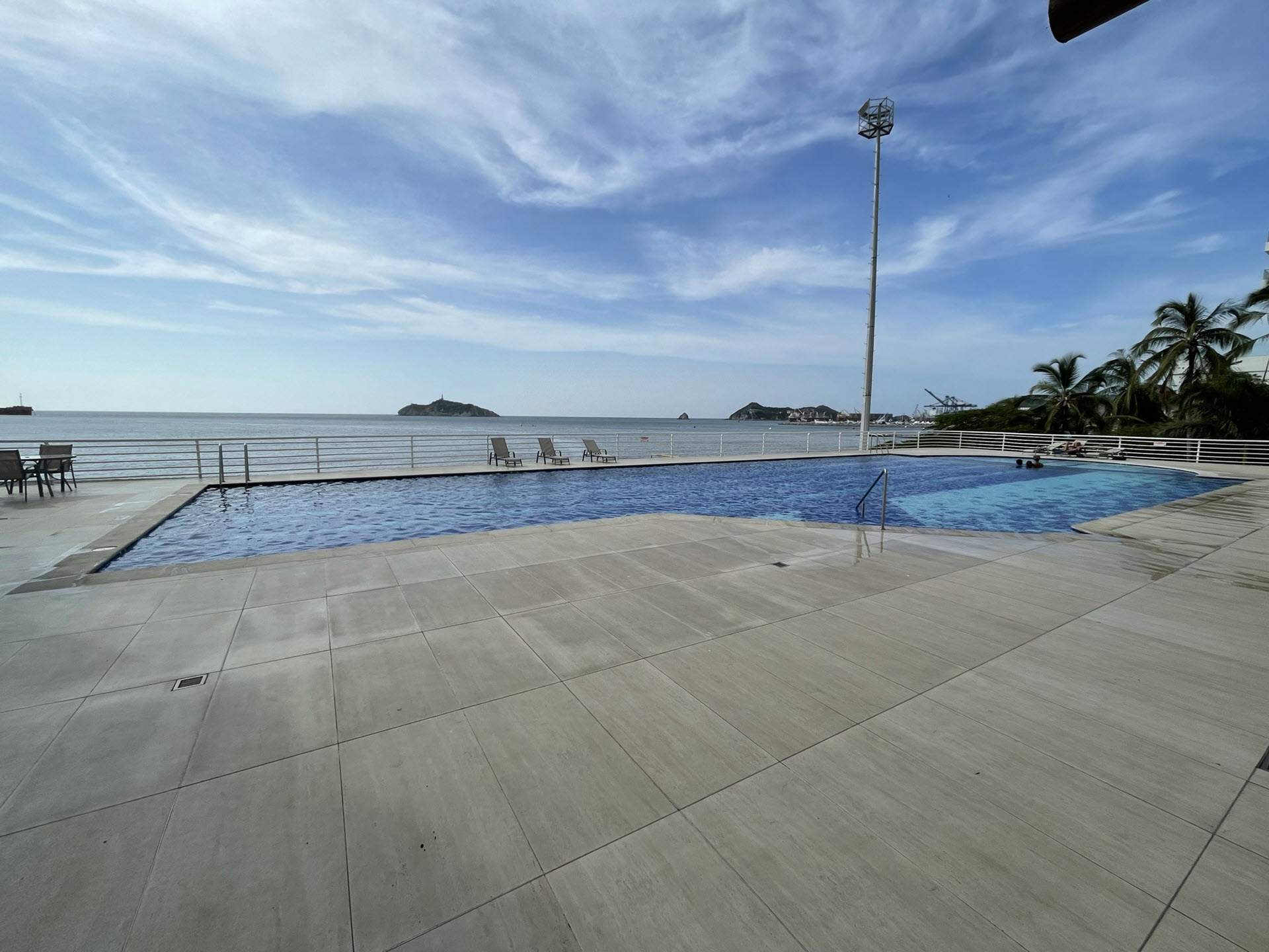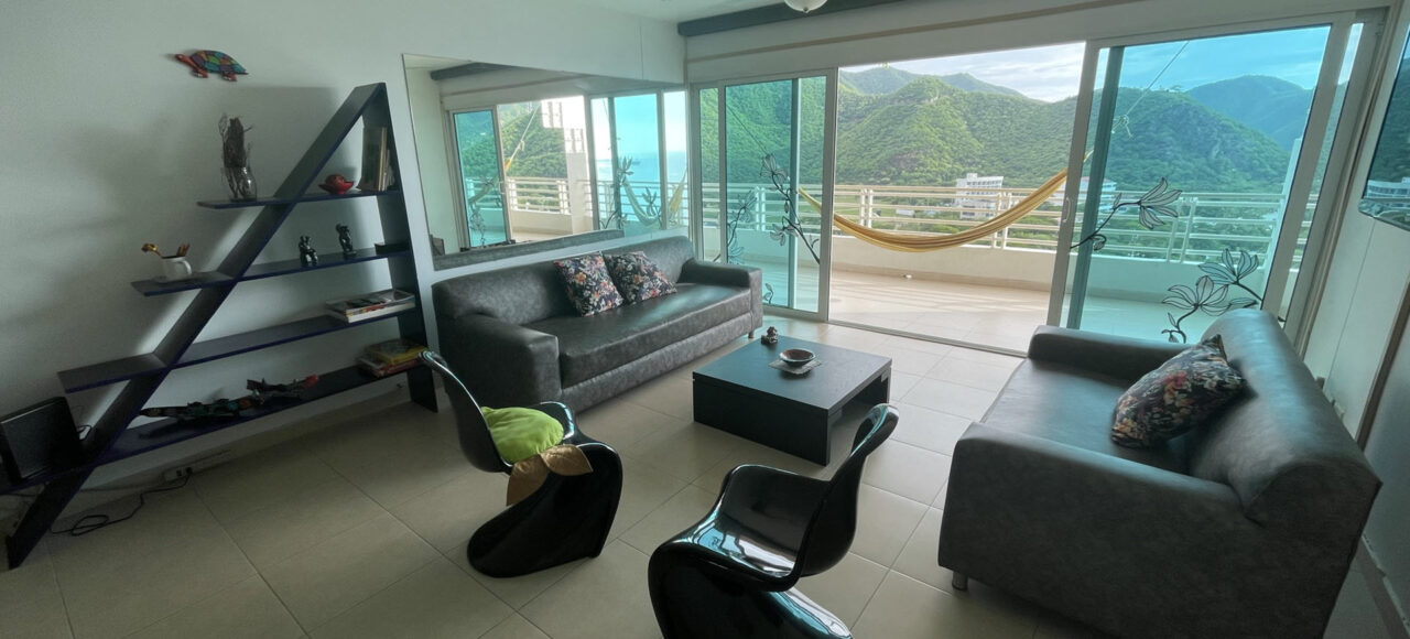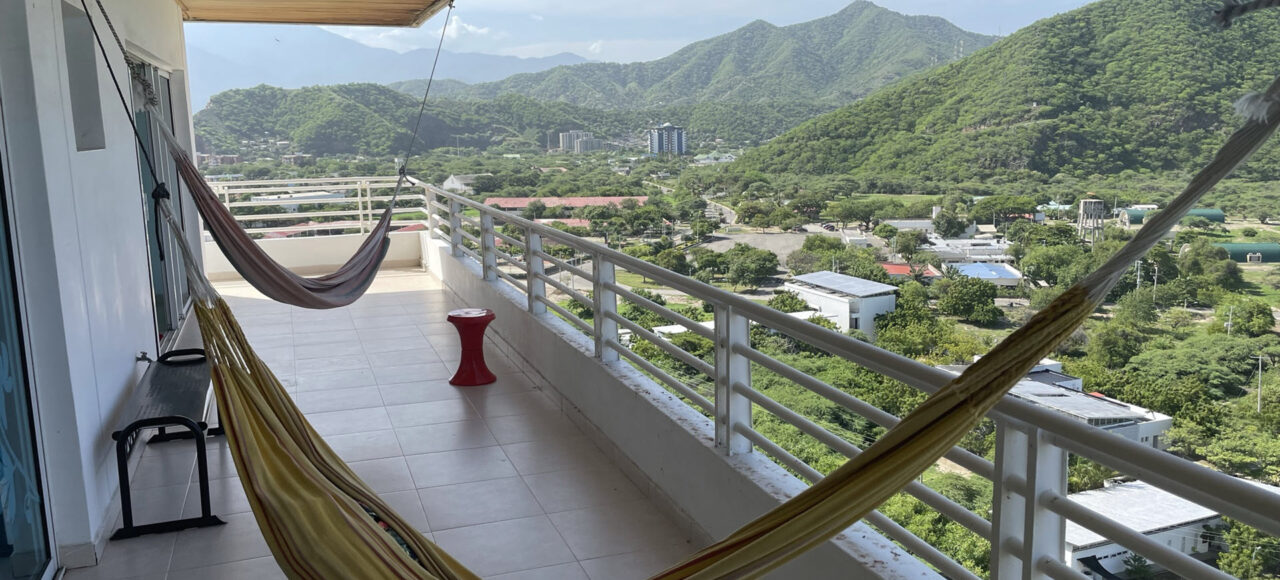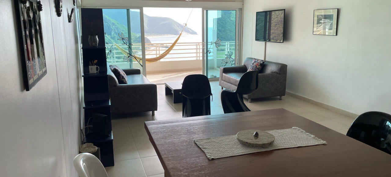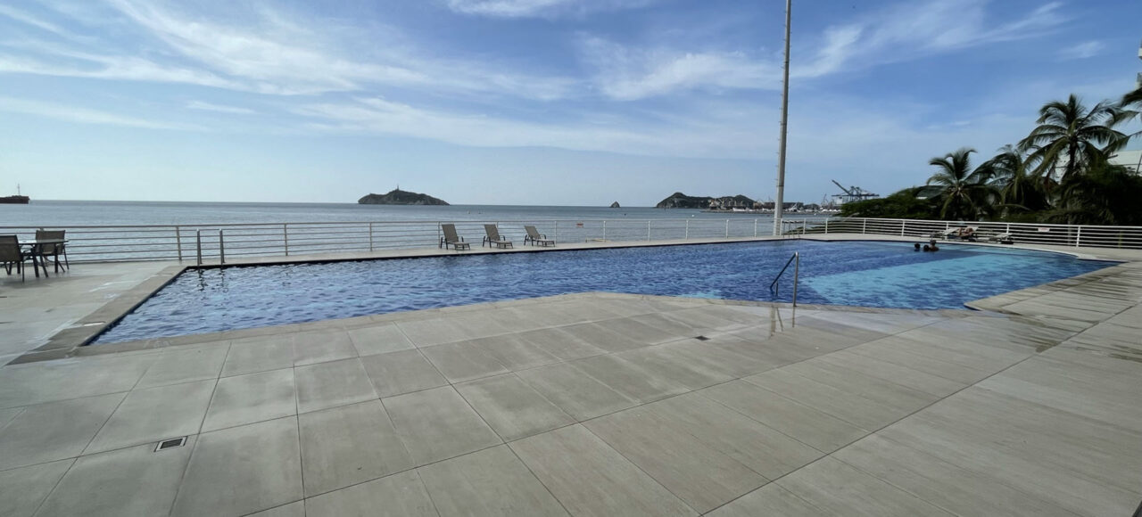 Nuestro apartamento en Santa Marta se encuentra en el piso 15 de un edificio frente a la playa, cerca de la marina.